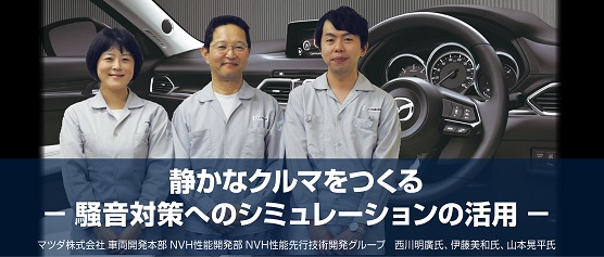 マツダ株式会社 車両開発本部 NVH性能開発部 NVH性能先行技術開発グループ 西川明廣氏、伊藤美和氏、山本晃平氏にVA Oneを導入した経緯とその効果について詳しく聞きました。