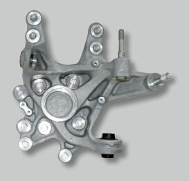 アルミナックル等は自動車メーカーからの依頼に応じて作ります。しかし、メーカーから指定があるのは「ナックルと他の部品が接する『取付点』の位置と形状」「材料」「重量」「強度・耐久性」などの仕様のみです。