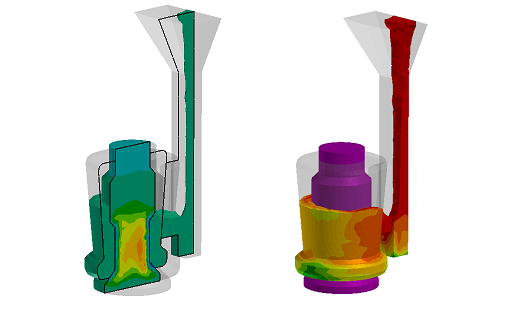 ProCASTでは、湯流れと凝固を同時に計算できるので、前述のような現象が起きた場合も欠陥を正確に予測することができました。