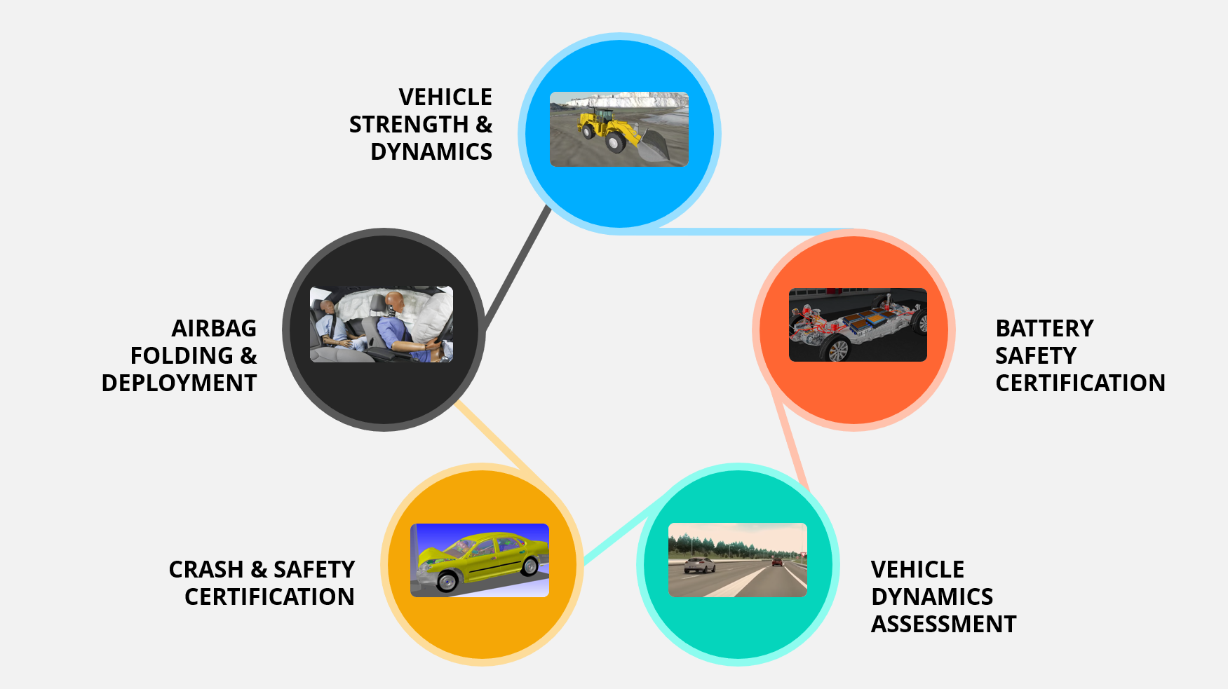 Battery manufacturers and OEMs use VPS to achieve regulatory certification, enhance battery safety, and reduce costs through comprehensive assessment, covering micro-scale cell analysis to macro-scale full-car crash scenarios.